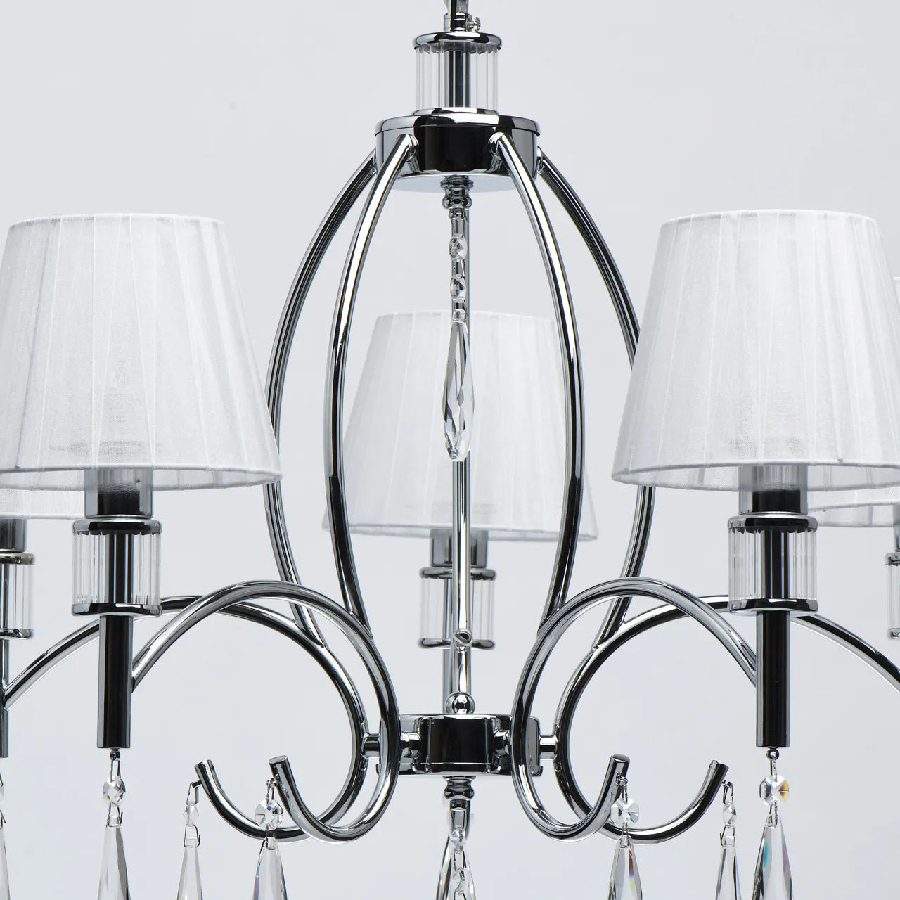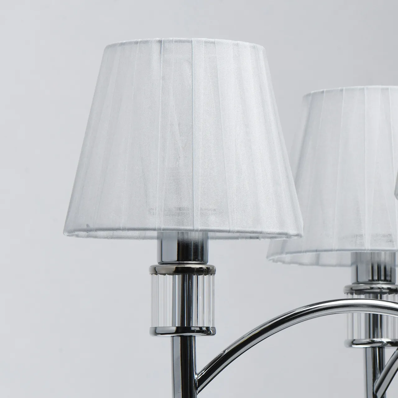 Основание/ металл/ хром Абажур/ текстиль/ белый Декор/ хрусталь/ прозрачный