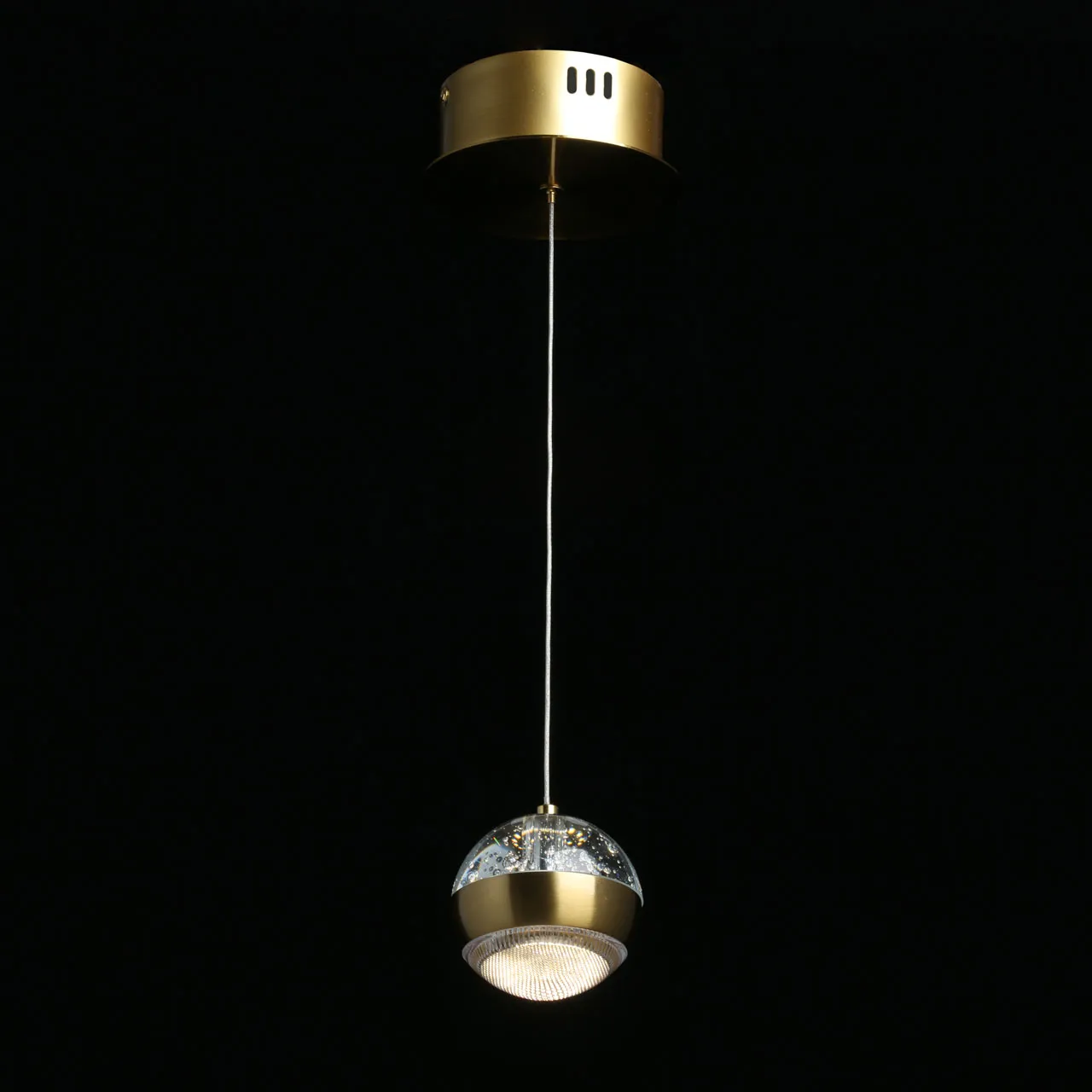Основание/ сплав алюминия/латунь Плафон/ стекло, акрил/ прозрачный, пузырьки воздуха