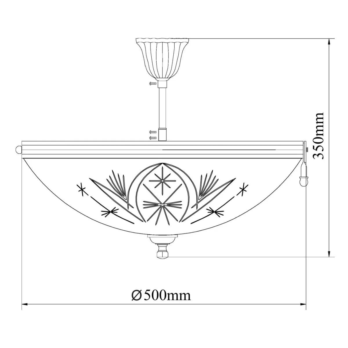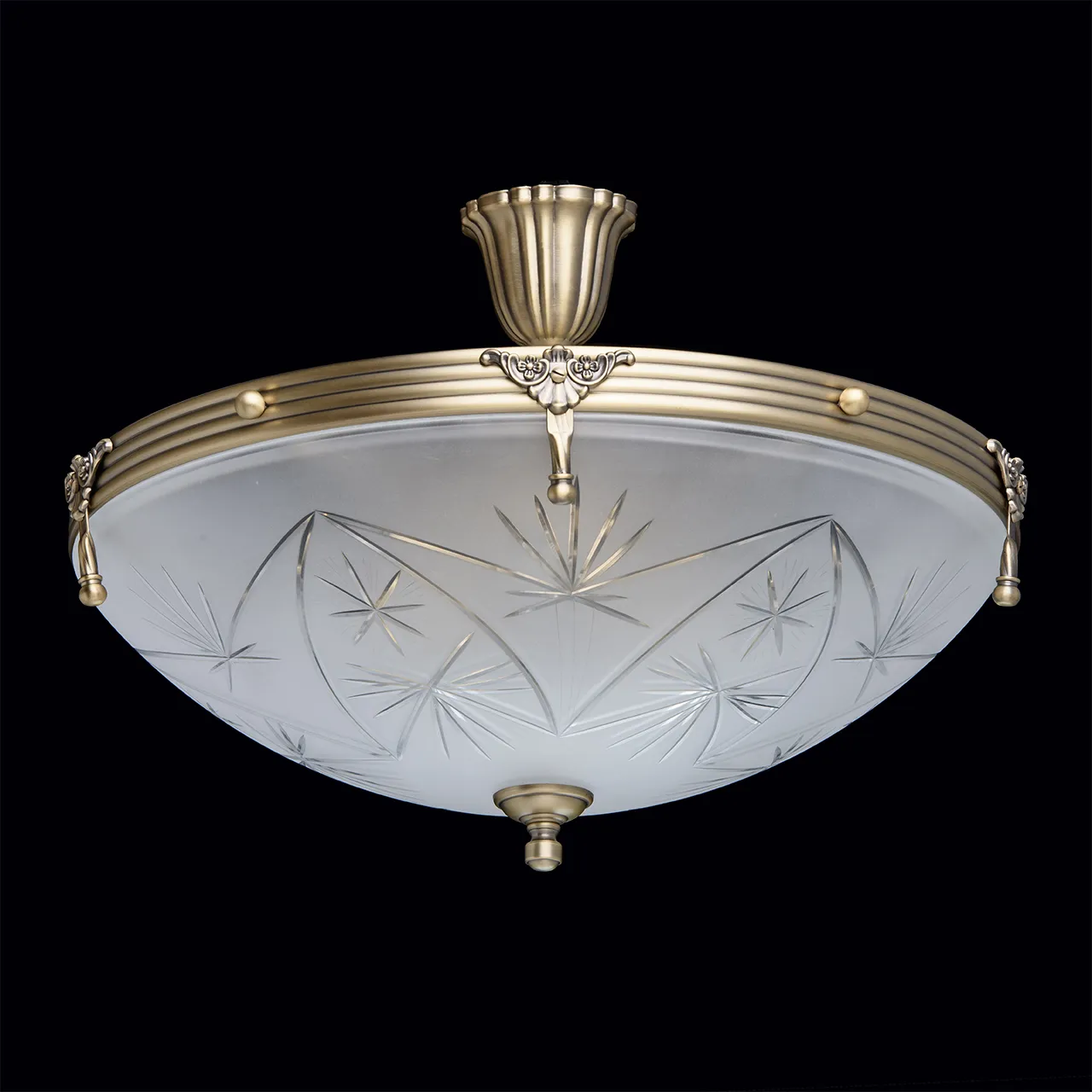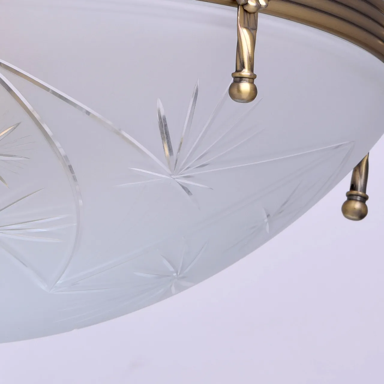 Алюминиевое основание цвета античной бронзы, плафон из матового стекла с резным узором.